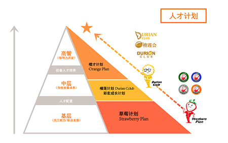 如有幫助員工樹立職業發展目標、激發工作熱情的“彩虹計劃”:通過專業培訓、師徒幫帶、技能競賽和輪崗鍛煉以及崗位創新體系等提升其職業道德和行為素養的員工培育機制;如幫助年輕員工實現人生角色完美轉變的“草莓計劃”:通過草莓課程、草莓頭腦風暴、草莓公益行動及草莓示范崗、草莓集體活動及草莓社團輔以導師制的日常指導等形式培養草莓的專業、創新、責任和激情四大品質;如覆蓋了技術研發和管理兩大后備人才職業發展通道的“榴蓮會”:通過實施科研人才發展戰略和管理培訓及實戰演練等方式,幫助員工找到最適合的自我發展途徑,構成了人才培養體系中的核心環節。