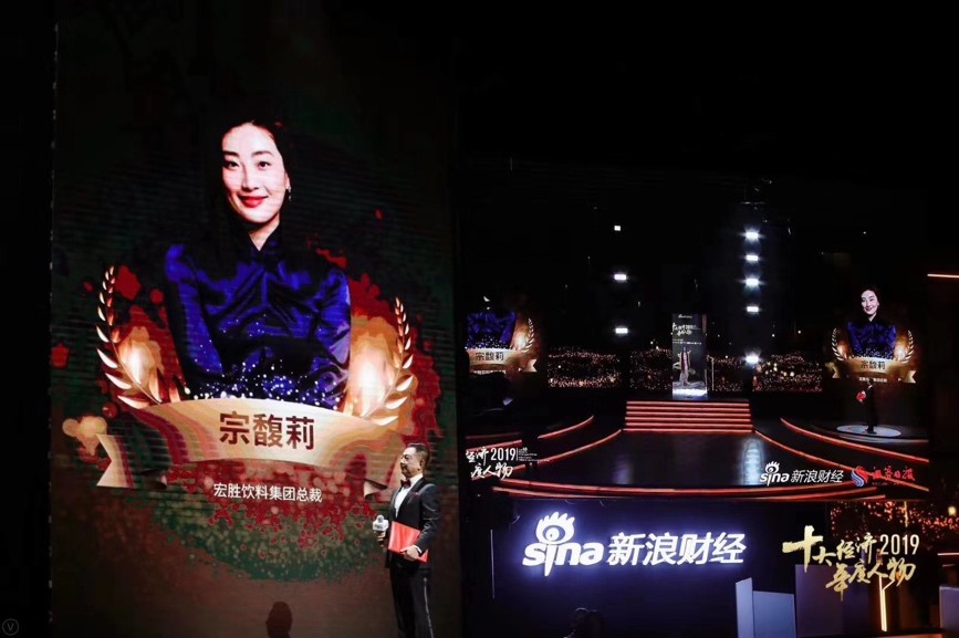 1月9日,“2019十大經濟年度人物”頒獎典禮在北京舉行,宏勝飲料集團總裁宗馥莉榮獲“2019經濟年度人物新銳獎”。