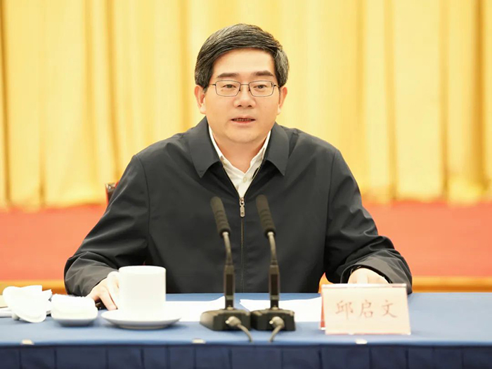 省委常委、統戰部部長邱啟文就“學習貫徹黨的二十大精神”作主題講話。其中,當談及新生代企業家的發展問題時,他號召新生代企業家要傳承老一輩企業家的精神,要敢為人先、勇立潮頭,做一支有責任的隊伍。